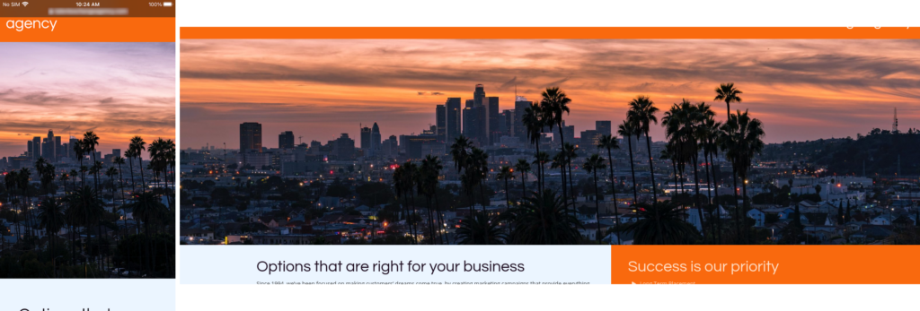 Right now, the image is set up as a background with the “Cover Page” size attribute and the 50%/50% position attribute. That means that as the device size gets smaller, the background focuses in on the center of the image: