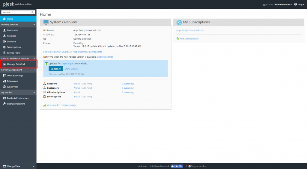 This tutorial will demonstrate how to install BoldGrid in your Onyx 17 Web Host dashboard. This method permits the installation of BoldGrid on any sites that are owned by the Administrator account.