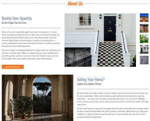 The “About us” page in Pavilion has 3 block sections that include space for text and an image. Use this page to tell a story about your company’s origin and culture. Pictures can help visitors relate to your business and reinforce your status in the industry.