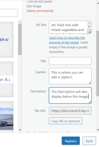 Generally, when you edit an image in Post and Page builder you can click on the image to select it and choose the “music note + camera” icon to access the image settings. Within the image settings, there should be an option to add a caption or description. This text will usually appear below the image.