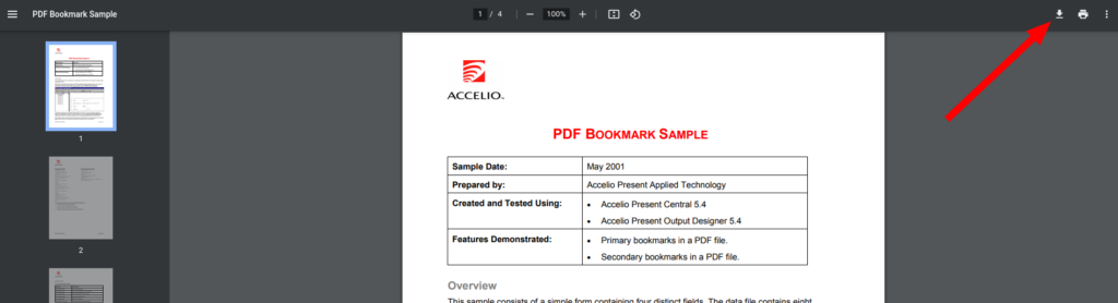 For example, here’s how a PDF link would normally look using the Chrome Browser, with the download button highlightedf: